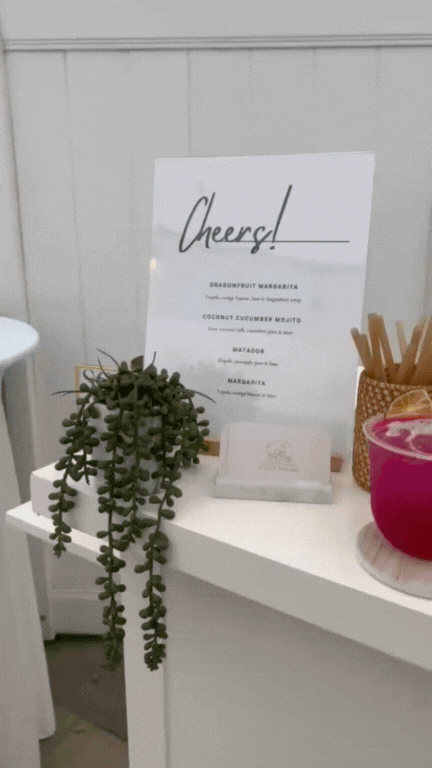 We’re all about the details—and that includes the drinks. Every pour is styled to match your vibe, your colors, and the look of your day. Because let’s be real: your cocktails should be just as pretty as everything else.